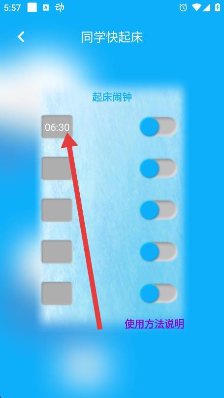 2、进入起床闹钟设置界面后,点击需要设置闹钟的按钮。