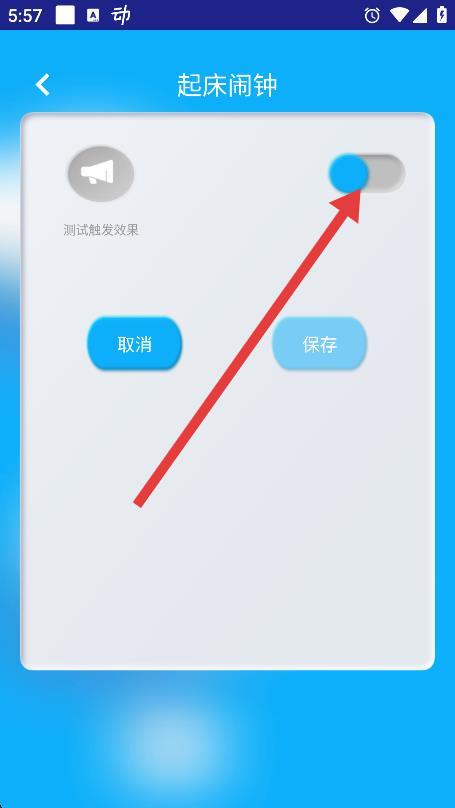 3、在弹出的闹钟设置页面,点击开关按钮开启闹钟。