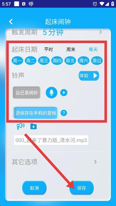 4、根据需求设置闹钟,设置完成后点击保存按钮即可。