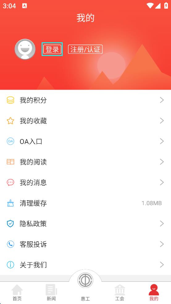 3、在个人中心页面,点击登录按钮,进入登录界面。