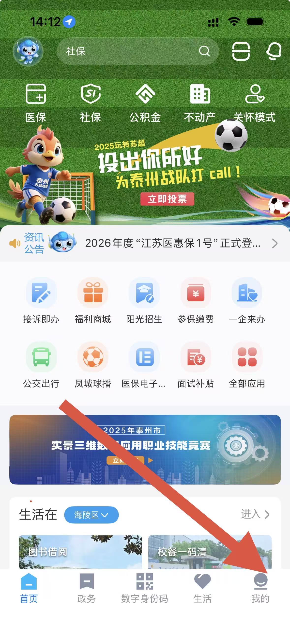 1、打开泰州通app,点击页面右下角我的选项,进入个人页面。
