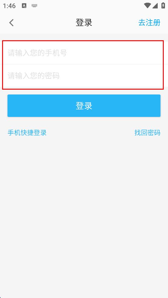 3、在登录界面,先在“请输入您的手机号”输入框中输入手机号,接着在“请输入您的密码”输入框中输入密码。