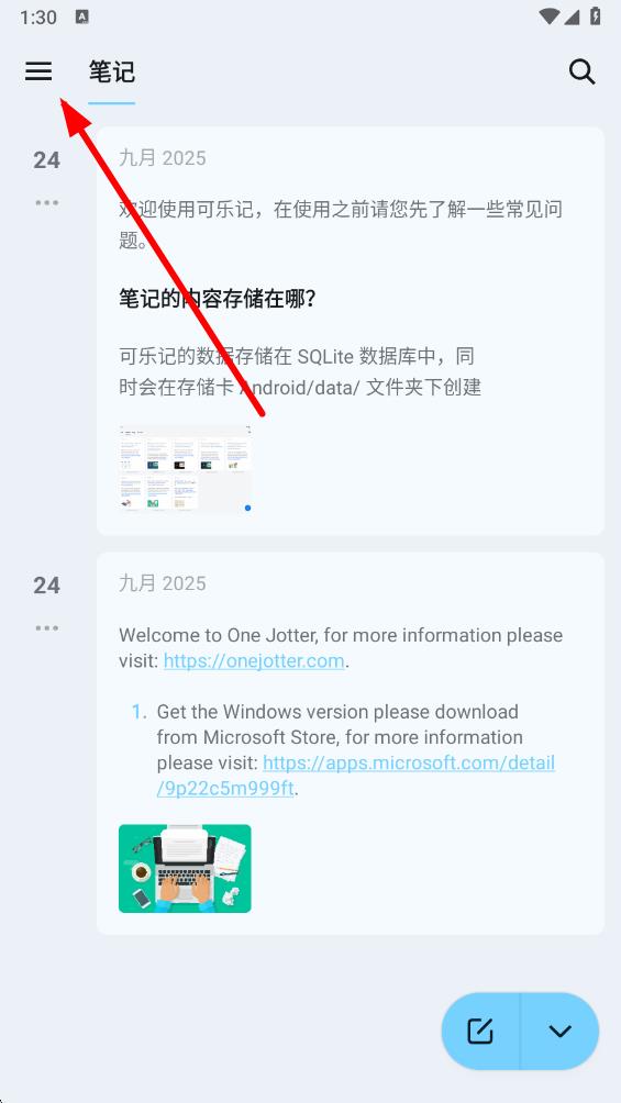 1、打开可乐记app,点击左上角的菜单图标,展开侧边栏菜单。