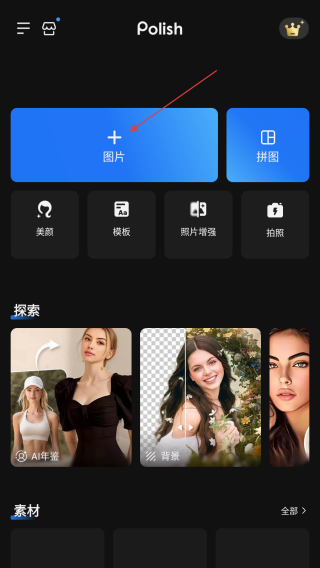 1、打开专业照片编辑器,点击界面中的图片按钮,进入图片选择界面。