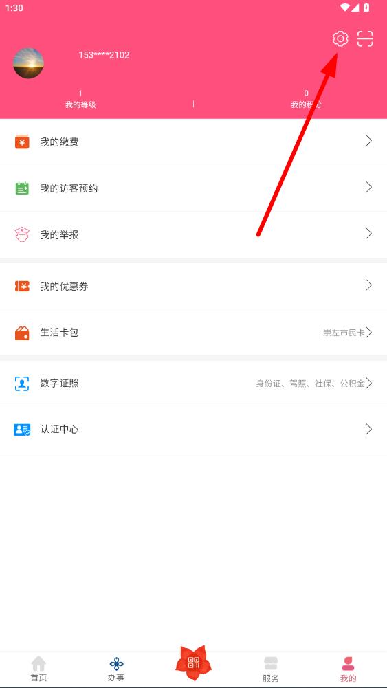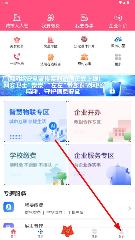 1、打开爱我崇左app,点击底部导航栏最右侧我的进入个人页面。