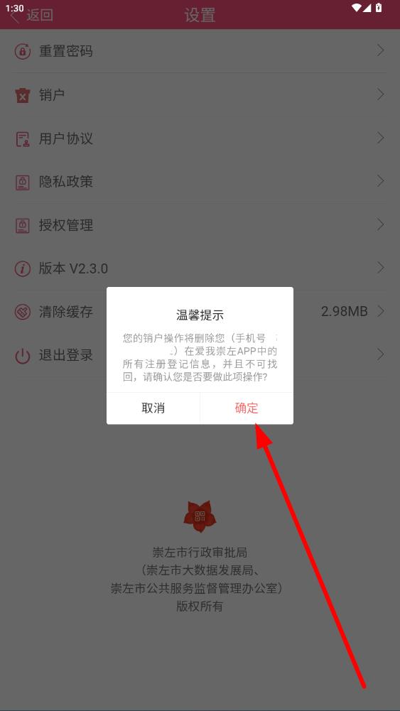 4、在弹出的温馨提示窗口中,确认销户操作会删除账号信息且不可找回,点击确定,完成账号注销。