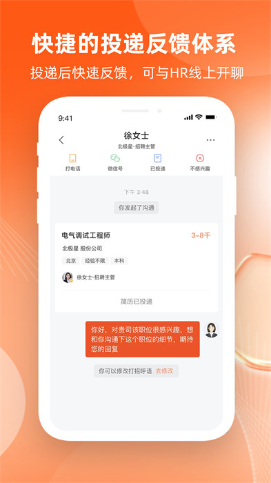 随时随地跟踪投递信息,第一时间获取最新职位,随时随地掌握面试动态。找工作,快人一步。