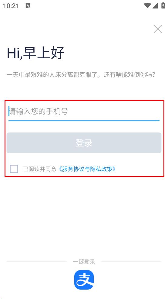 4、在登录界面,先勾选“已阅读并同意服务协议与隐私政策,然后在输入框中输入自己的手机号,最后点击“登录”按钮,完成登录流程。
