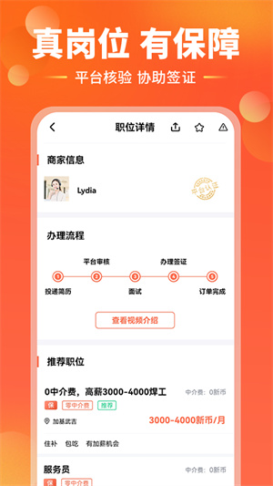 去狮城找工作app是一款专注于学生、宝妈、白领等中青年群体提供安全、可靠、丰富的兼职服务,在这里的各种招聘信息也非常的丰富,各个行业的相关内容都是非常的丰富,让用户可以更直观的了解信息,求职也变得非常简单,专注于新加坡出国劳务,为各类求职者提供了丰富的就业机会。