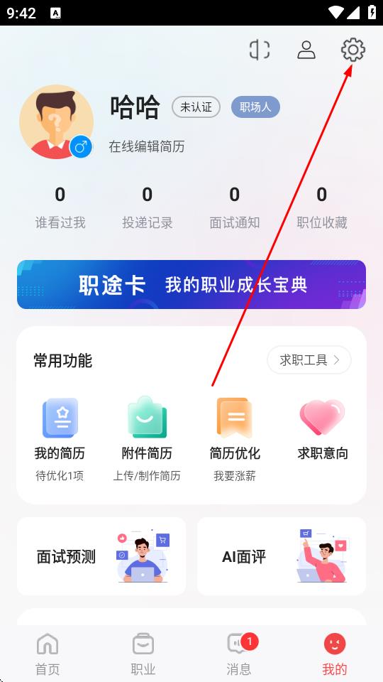 2、在我的页面中,点击右上角的设置图标,进入设置页面。