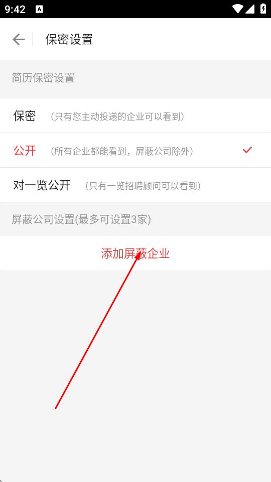 5、在搜索框中输入想要屏蔽的公司关键字,选择对应公司即可。