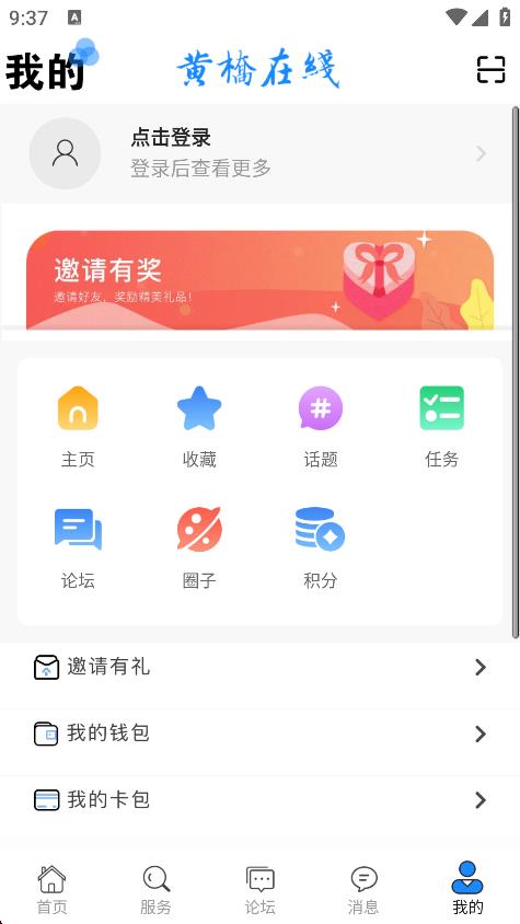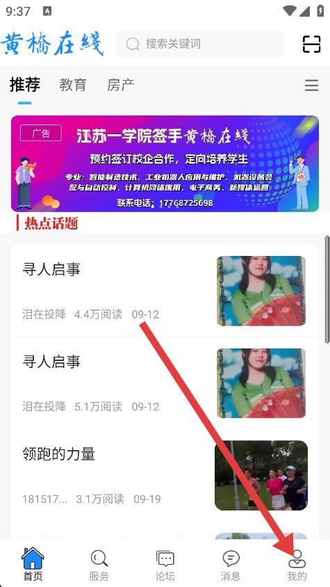 1、打开黄桥在线,点击底部导航栏我的,进入个人页面。