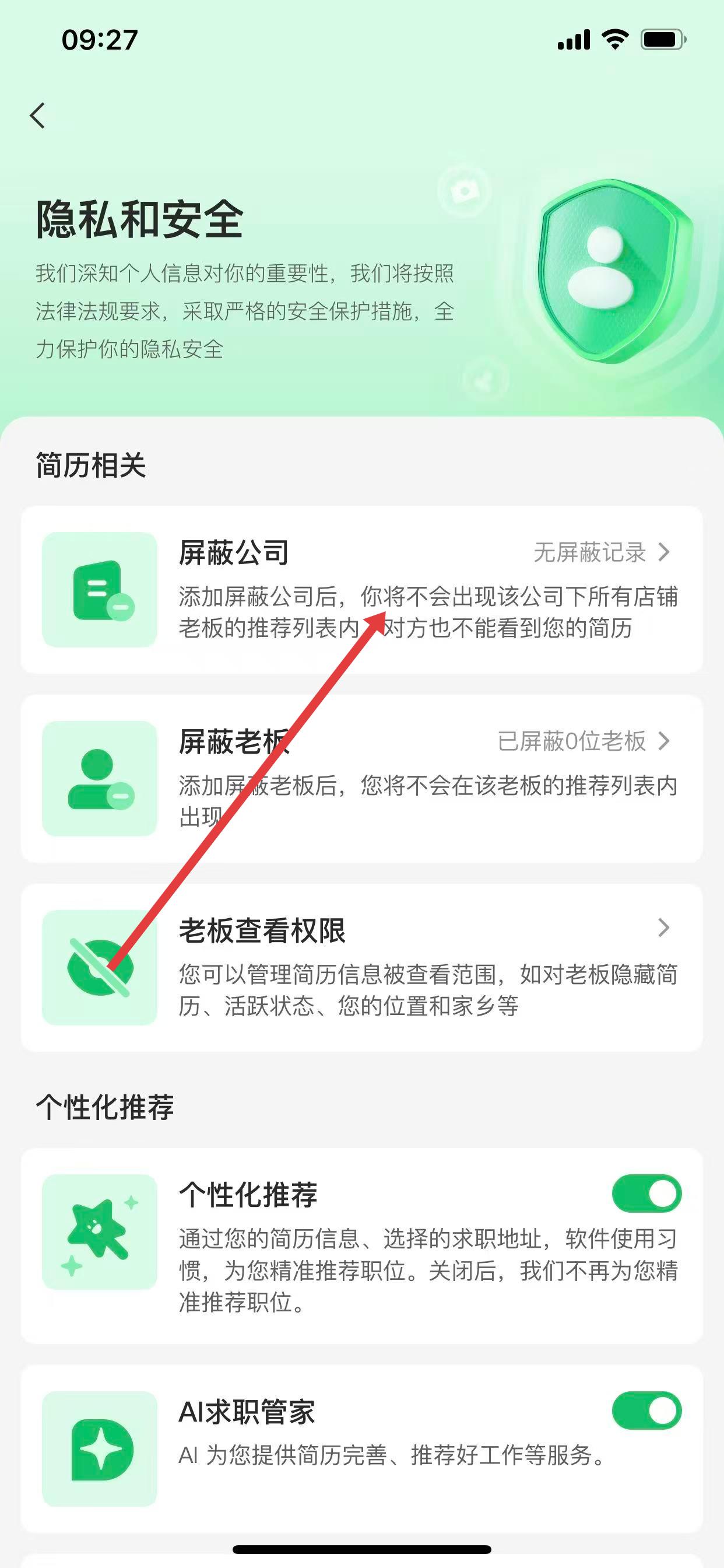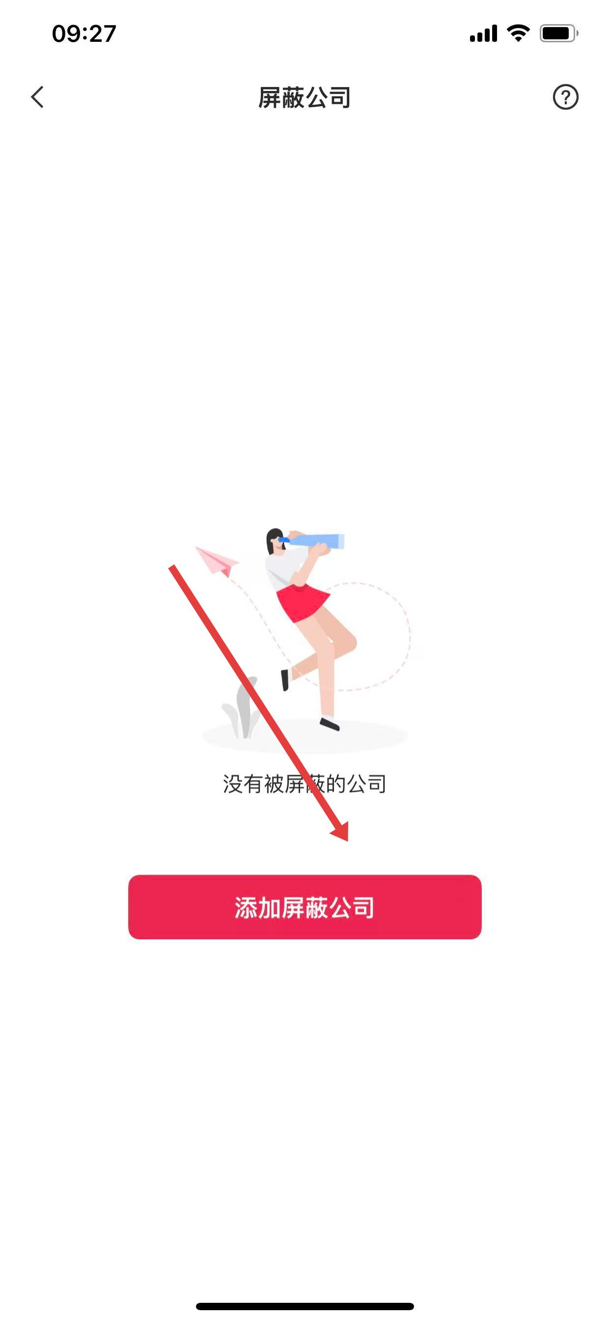 5、在屏蔽公司页面,点击添加屏蔽公司,找到需要屏蔽的公司即可。