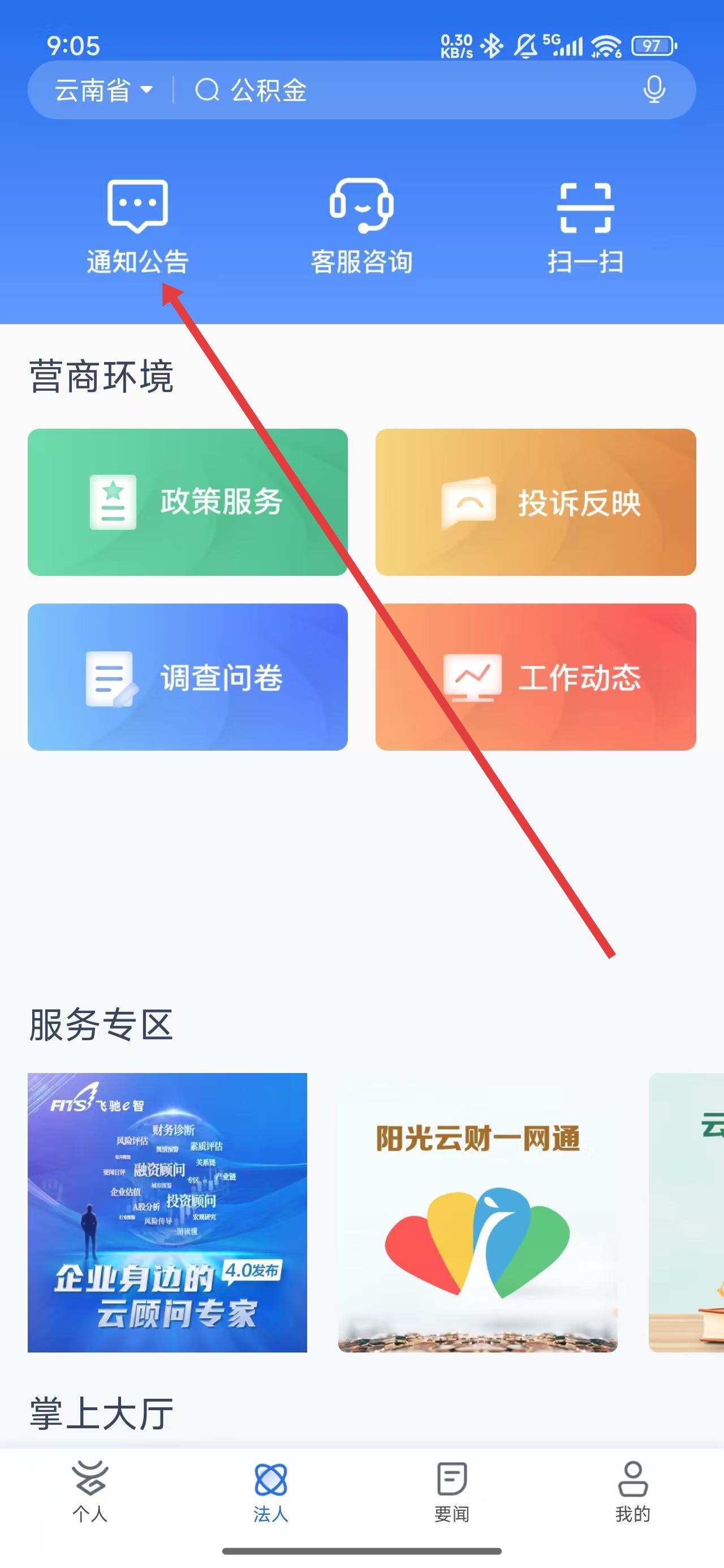 2、在进入到法人页面后,可以点击通知公告选项,进入查看公告。
