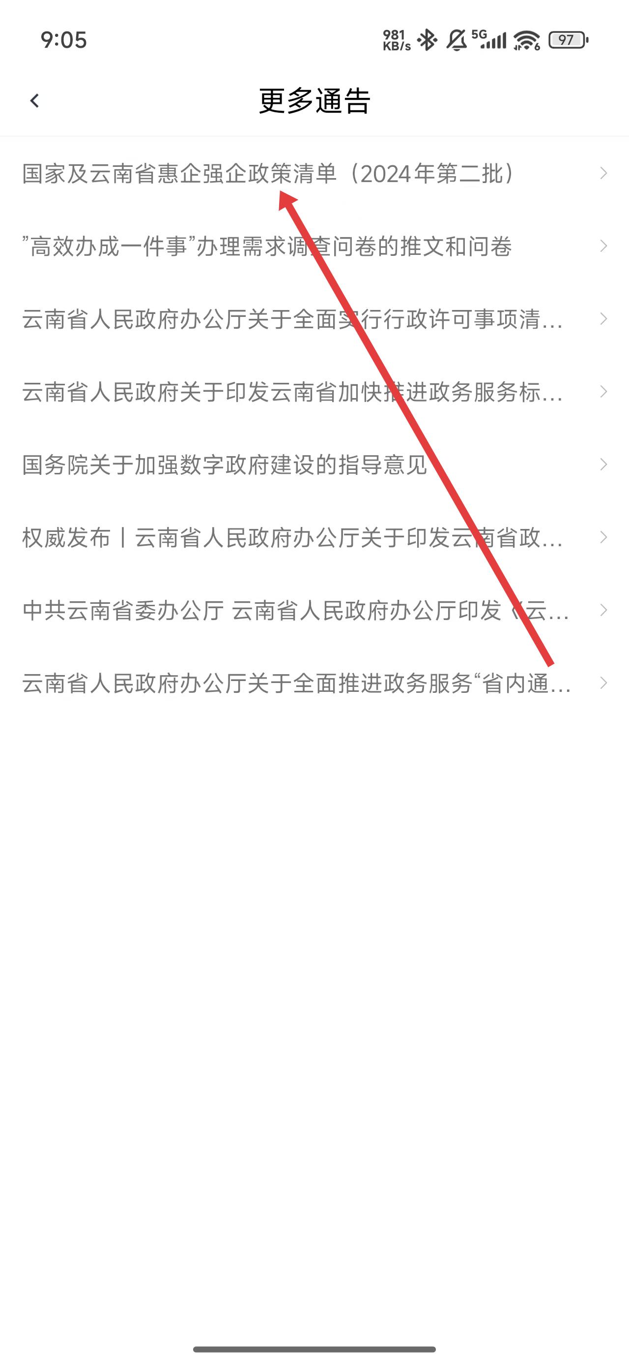 3、在进入更多通告页面后,可以点击第一条公告进入查看详情。