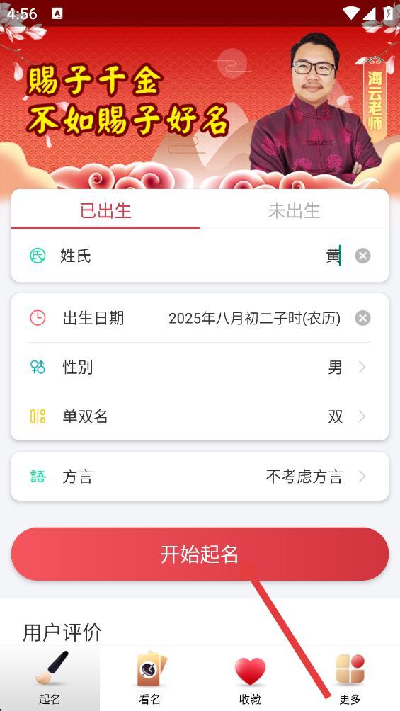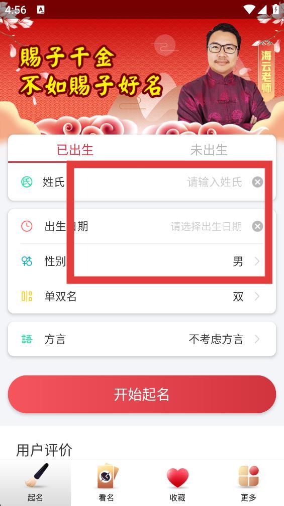 1、打开宝宝起名大师,进入首页后,按提示输入宝宝的信息。