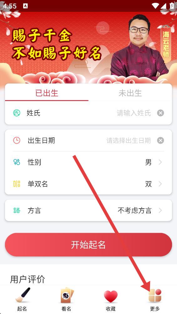 1、打开起名八字取名,点击底部导航栏更多选项,进入更多功能页面。