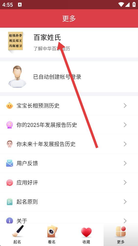 2、在更多功能页面中,找到并点击百家姓氏选项,进入百家姓氏查看页面。