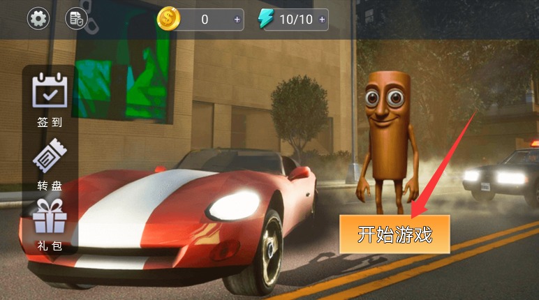 1、启动游戏后点击开始游戏按钮进入主界面,开启都市犯罪题材的冒险旅程。