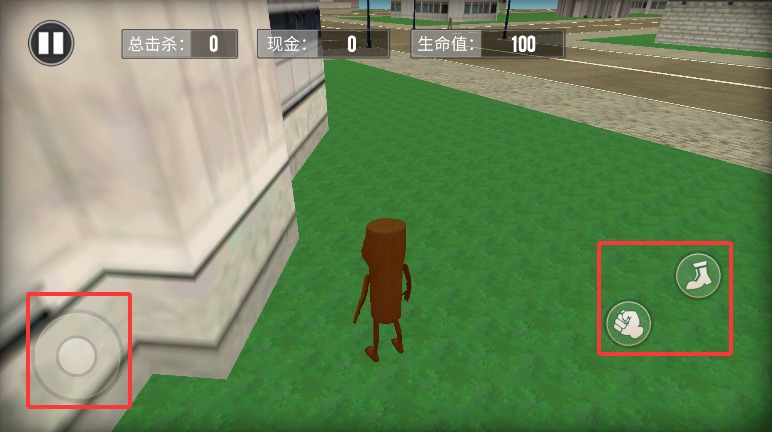 2、通过左侧虚拟摇杆控制角色移动走位,右侧按键可拳击攻击与脚踢攻击。