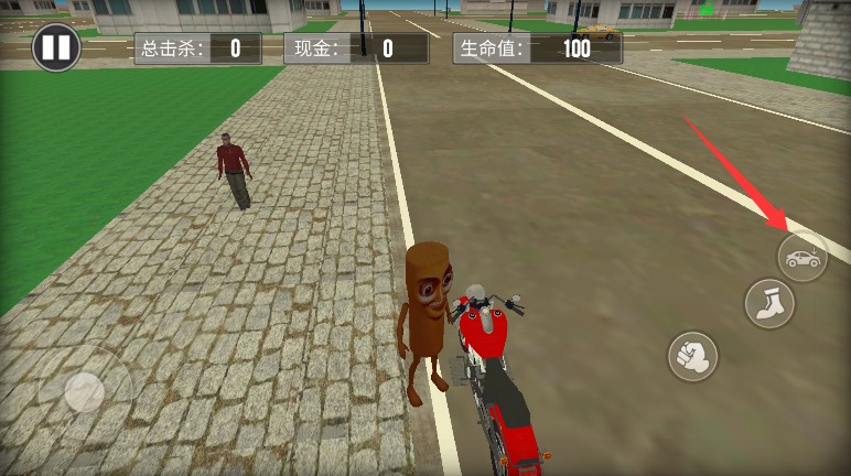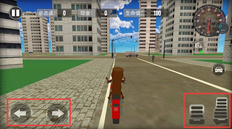 4、成功上车后使用左侧控制行驶方向,右侧油门刹车键负责前进与倒车动作。