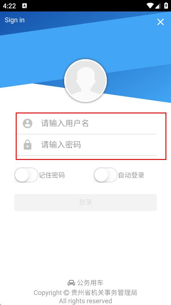 4、用户名和密码都输入完毕后,点击“登录”按钮,即可完成公务用车APP的登录操作。