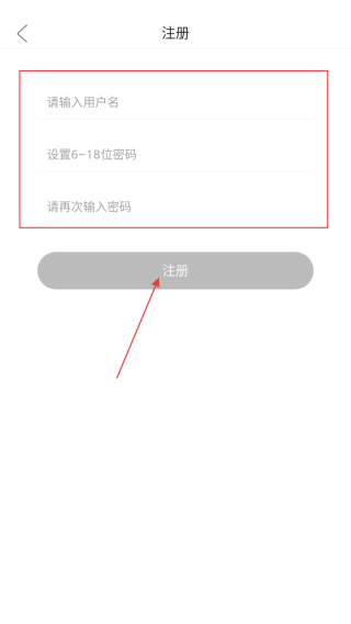 4、在注册页面,依次输入用户名、设置6-18位的密码并再次输入密码进行确认,最后点击注册按钮。