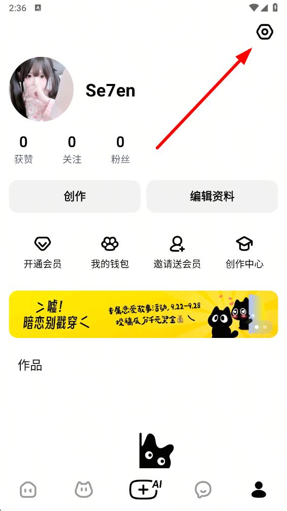 2、在个人中心页面右上角,点击设置图标,进入设置界面。