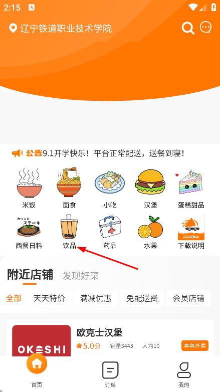 1、在首页,点击饮品,进入饮品店列表页面。