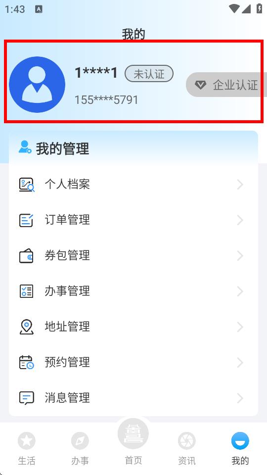 3、登录后显示未认证,点击“未认证”或者“身份信息”进入认证页面;