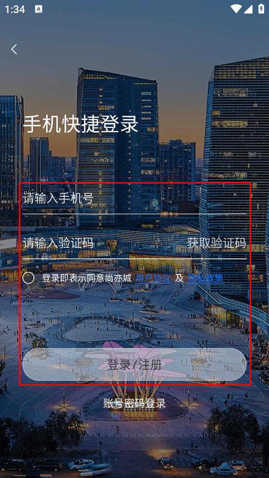 4、输入手机号,接着点击“获取验证码”,收到验证码后输入,再勾选协议及隐私政策,最后点击“登录/注册”按钮即可。