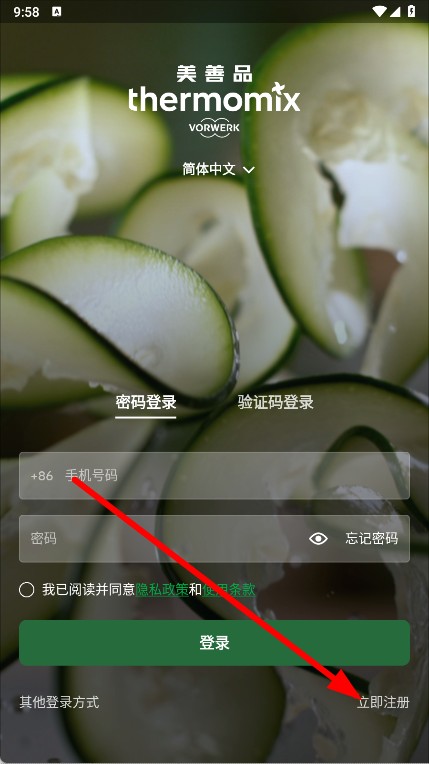 1、打开Cookidoo,在隐私政策页面点击同意。