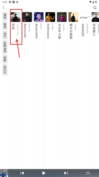 2、在歌手列表中,找到苏和歌手条目,点击进入其音乐列表。
