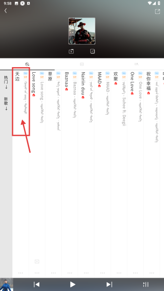 3、在音乐列表中,找到天边歌曲,点击进入播放页。