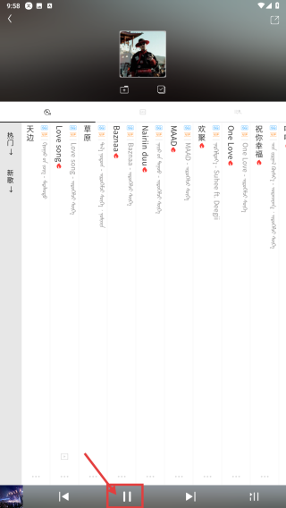 4、在播放页面,点击播放按钮,开始收听天边歌曲。