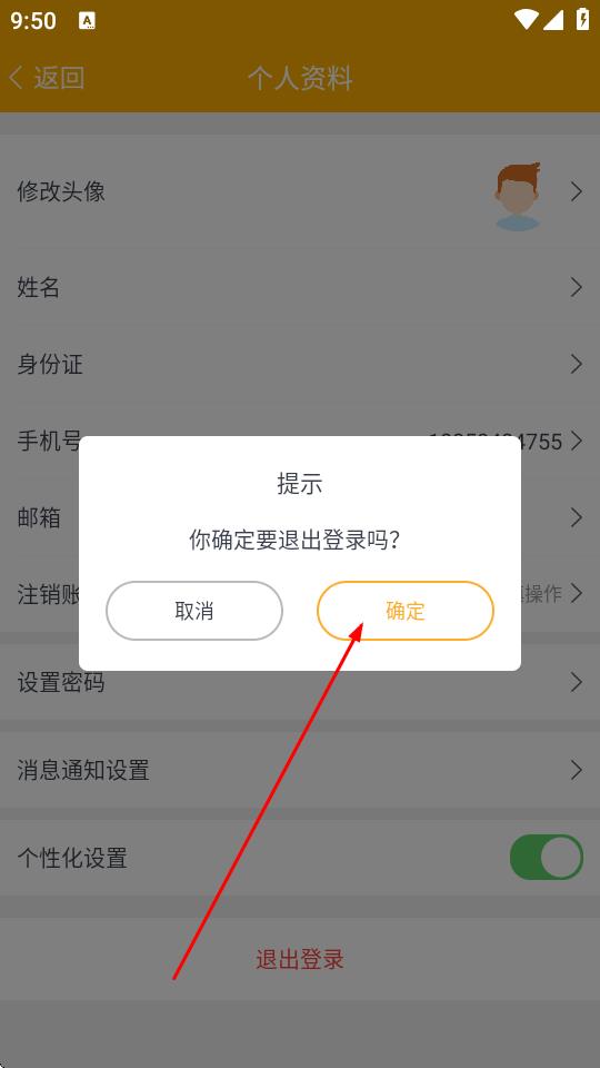 5、在弹出的你确定要退出登录吗提示框中,点击确定,即可退出账号登录。
