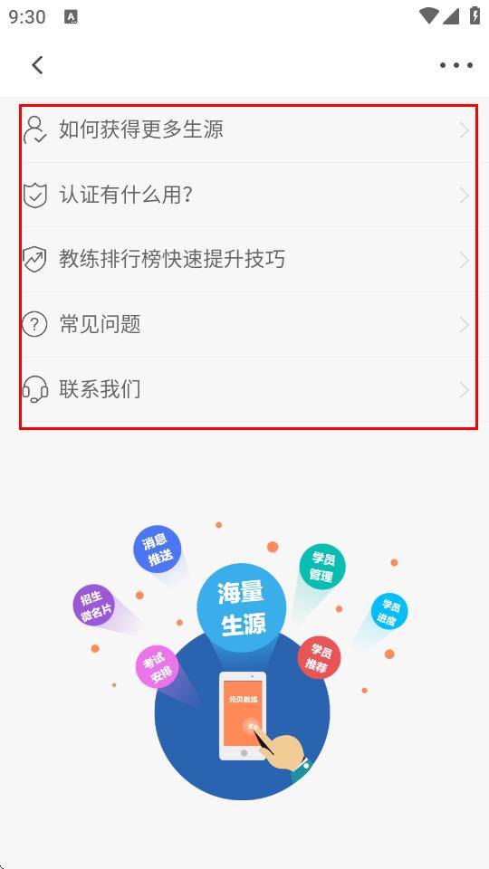 6、点击招生指南,查看如何获得更多生源、认证有什么用等内容,学习招生技巧和平台使用方法,提升招生效率。
