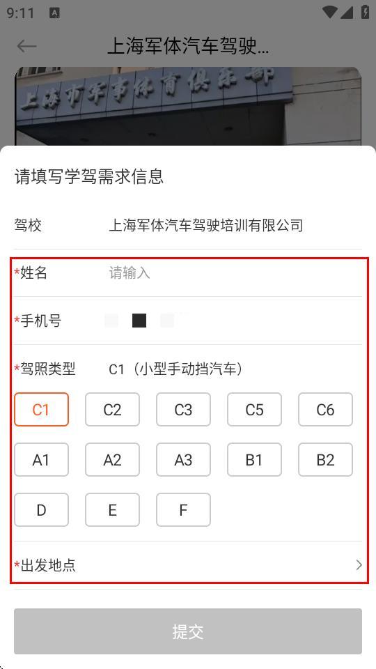 4、在弹出的请填写学驾需求信息页面,填写信息,点击提交,即可完成预约。
