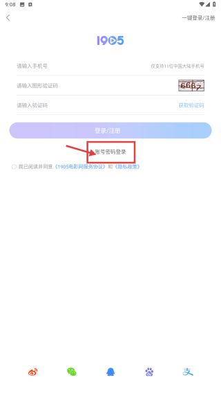 3、选择账号密码登录模式,输入手机号/邮箱/用户名和登录密码。