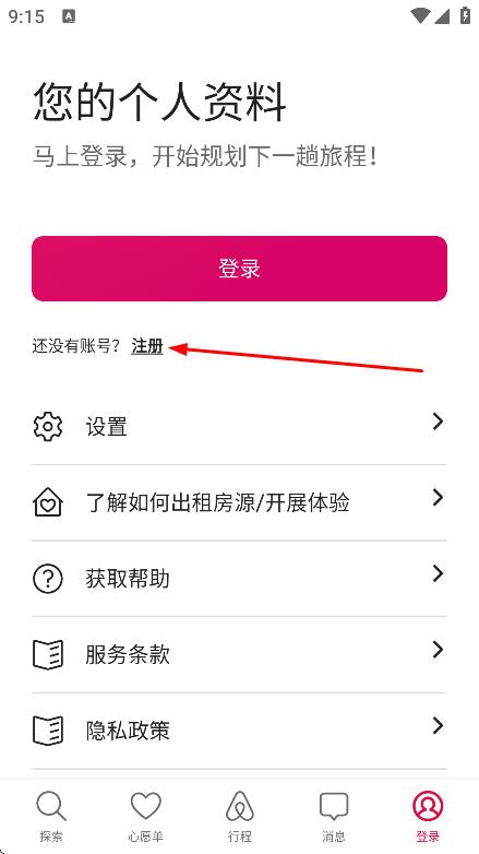 2、在个人资料页面,点击注册,进入登录或注册账号页面。