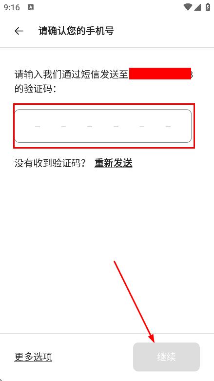4、在确认手机号页面,输入验证码后,点击继续,完成登录或注册流程。
