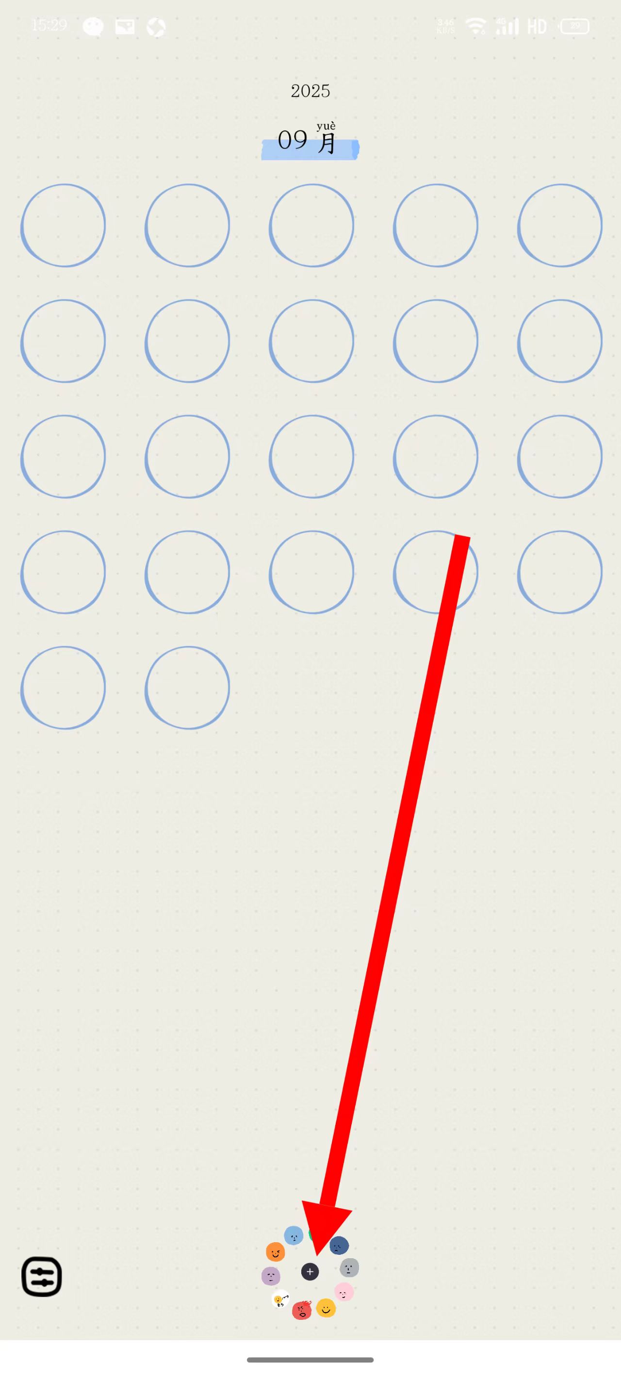 1、点击页面底部的表情环,选择对应心情的表情。