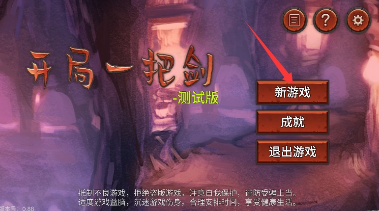 1、启动游戏后首先点击新游戏按钮,即可开启这段以剑为核心的冒险旅程。
