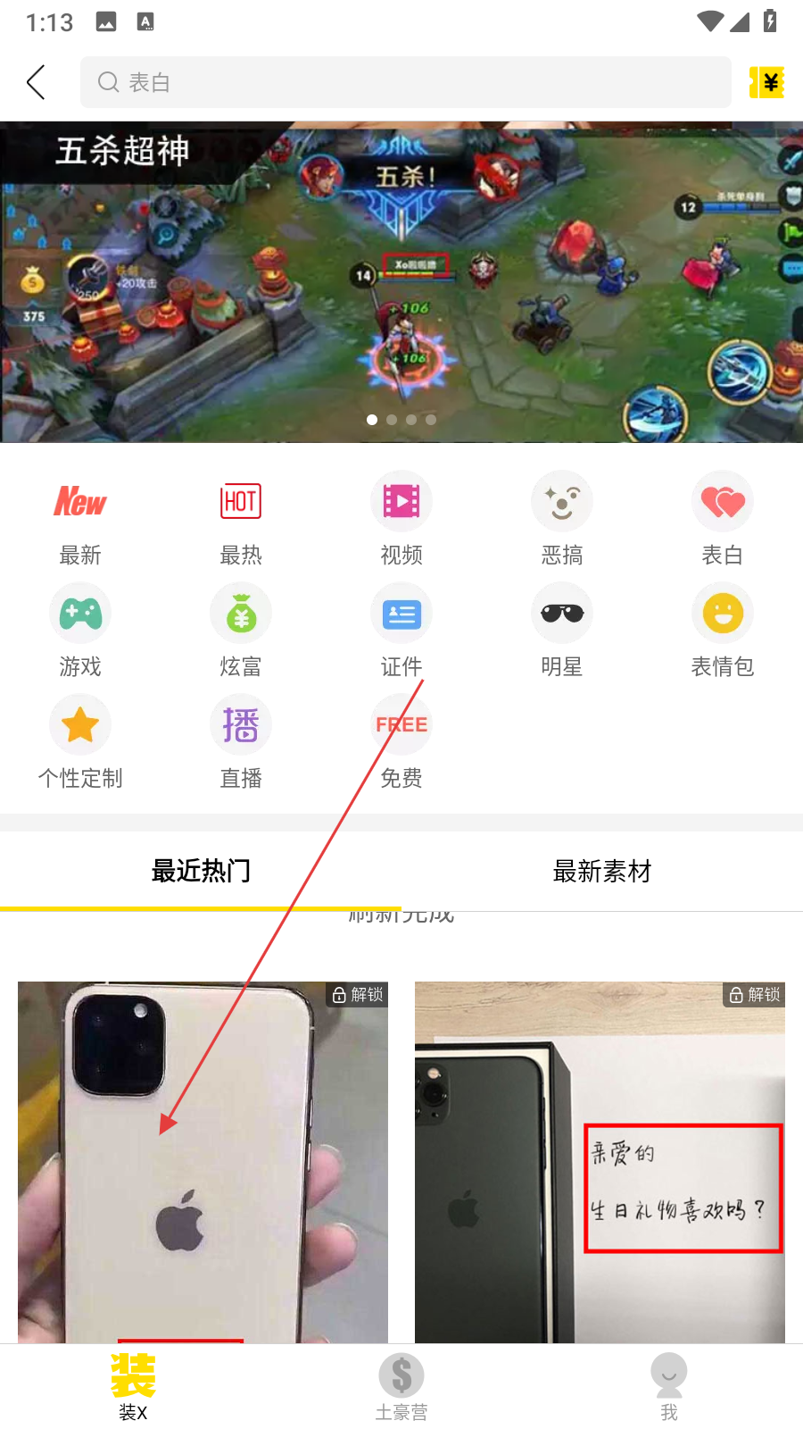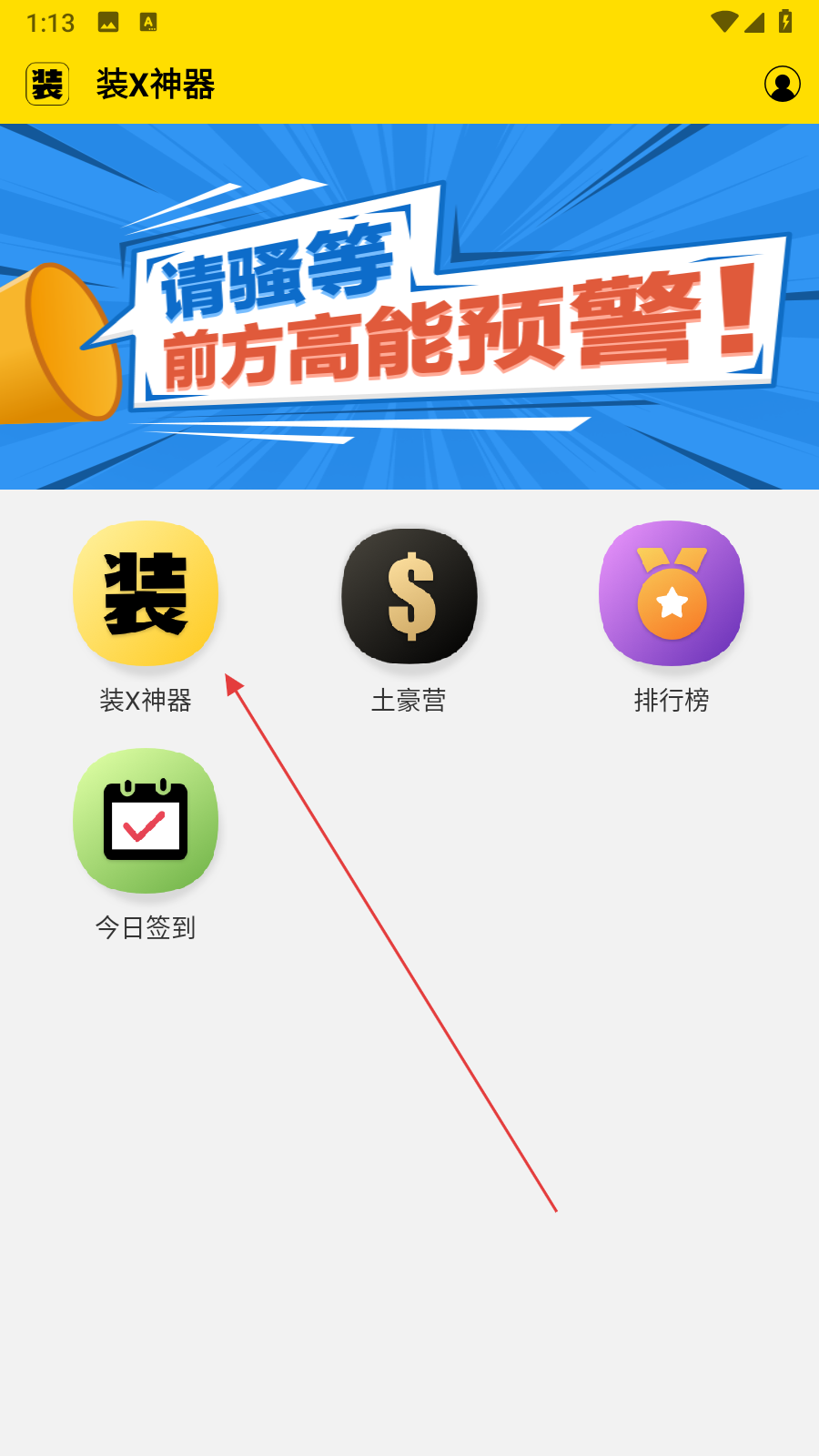 1、打开装X神器APP,在首页点击装X神器图标,进入模板选择界面。