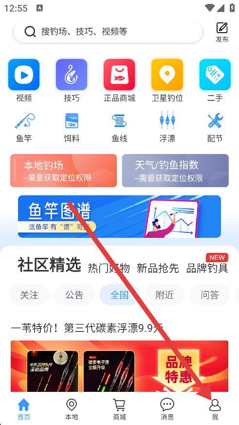 1、打开钓鱼人,点击底部导航栏最右侧的我选项。
