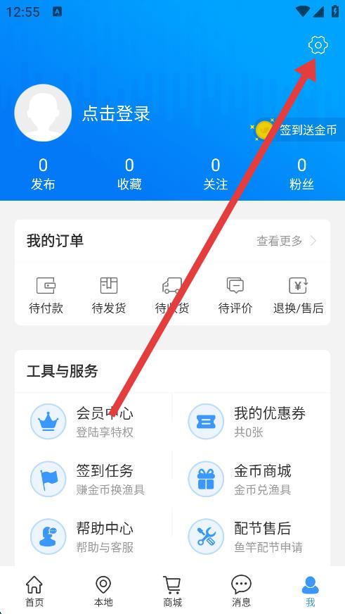 2、在我的页面右上角,点击齿轮状的设置图标。