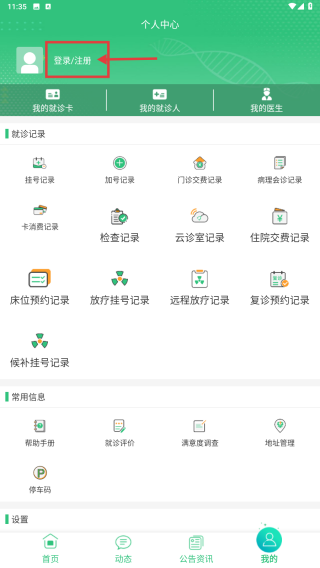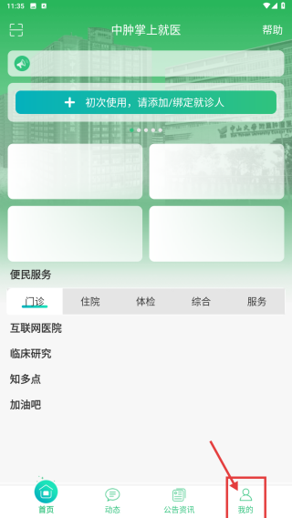1、打开中肿掌上就医应用,点击底部我的选项,进入个人中心页面。