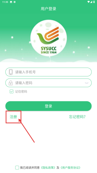 3、在用户登录界面,点击注册选项,进入注册信息填写页面。