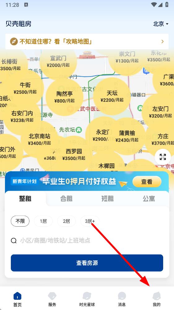 1、打开贝壳租房app,点击底部导航栏最右侧的我的图标,进入个人相关界面。