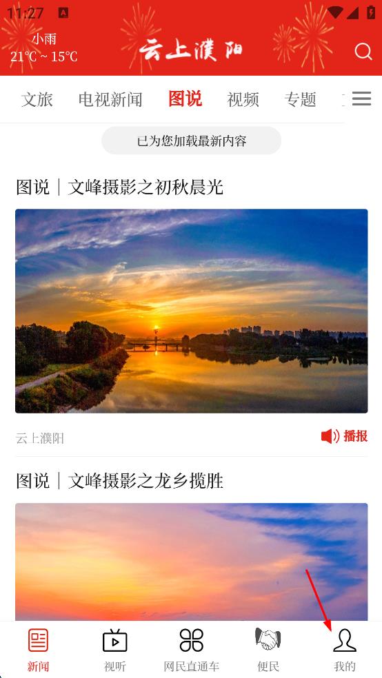 1、打开云上濮阳应用,在首页点击右下角“我的”选项,进入个人中心页面。